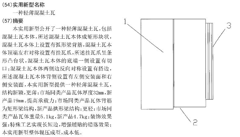 5.根據(jù)權(quán)利要求1所述的輕薄混凝土瓦,其特征在于,所述左側(cè)安裝面和右側(cè)安裝面底部混凝土瓦本體上對(duì)稱設(shè)置有弧形凹槽。